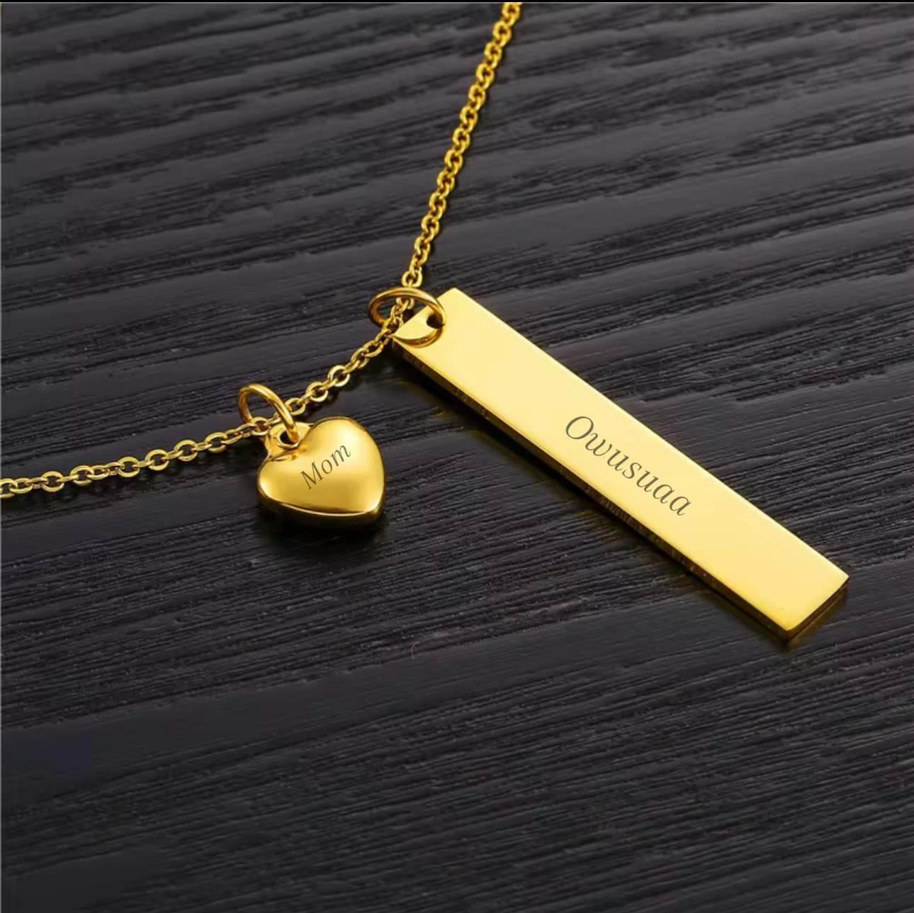 Our Adore Bar Necklace combines sleek simplicity with heartfelt sentiment. Featuring a slim, rectangular bar adorned with a tiny heart charm, this necklace is designed to be personalized with a name, word, or meaningful date. Crafted for those who appreciate minimalist elegance, it’s a versatile piece that can be worn daily or for special occasions, adding a subtle yet beautiful touch to any outfit.