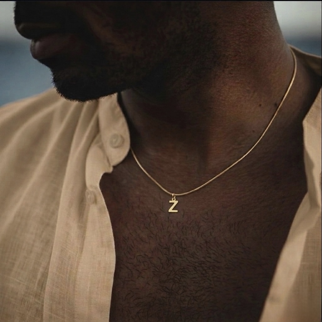 A bold expression of identity, designed for men who appreciate quiet confidence and refined detail. The Alpha Initial Necklace features a sleek, polished letter pendant suspended on a fine chain, creating a look that is both minimal and commanding.