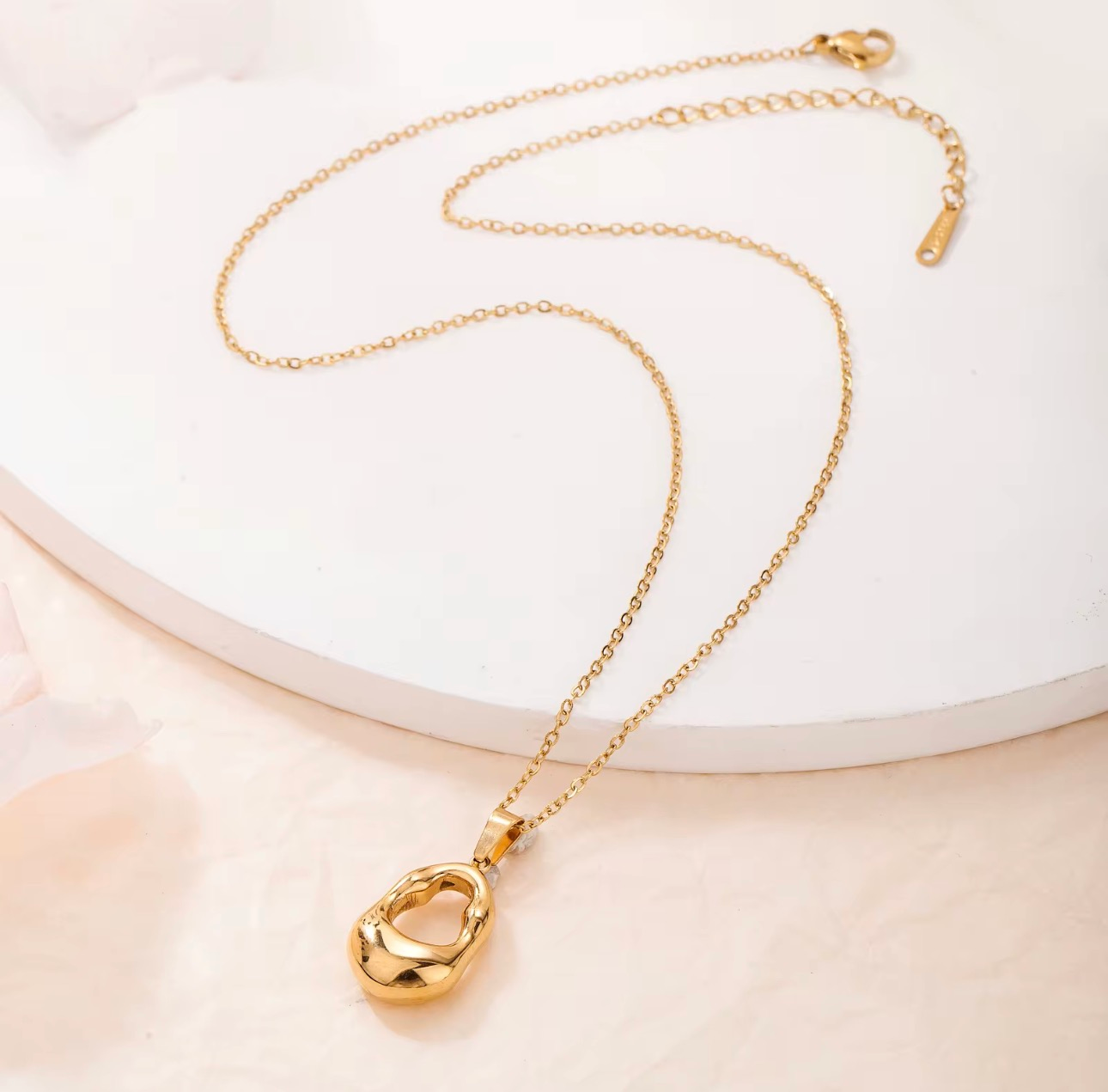 The Aperture Necklace is a celebration of modern minimalism and refined artistry. Its bold, hollow pendant features a smooth, organic shape that forms a striking aperture — capturing light and attention with effortless grace.