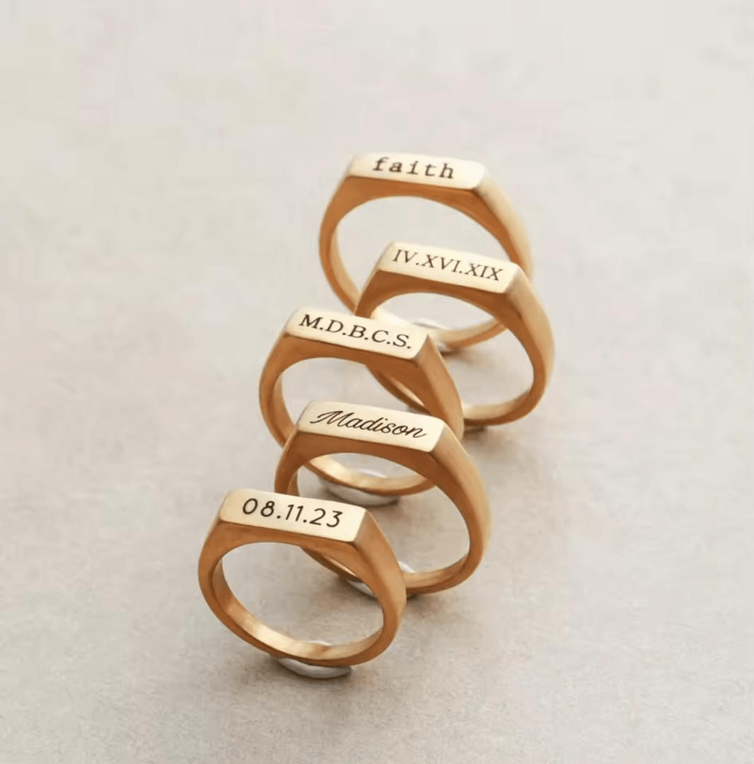 Each ring is individually engraved and crafted with precision, allowing you to make it deeply personal — initials, affirmations, anniversaries, or a single word that speaks volumes.