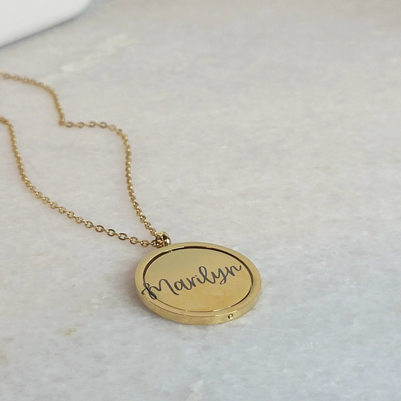 The customizable engraving on both the outer and inner circles allows you to capture significant names, dates, or inspirational words, making it the perfect gift for yourself or a loved one. Whether you’re marking a special occasion or simply adding a personal touch, the Halo Spin Necklace is a timeless piece designed to be worn every day.