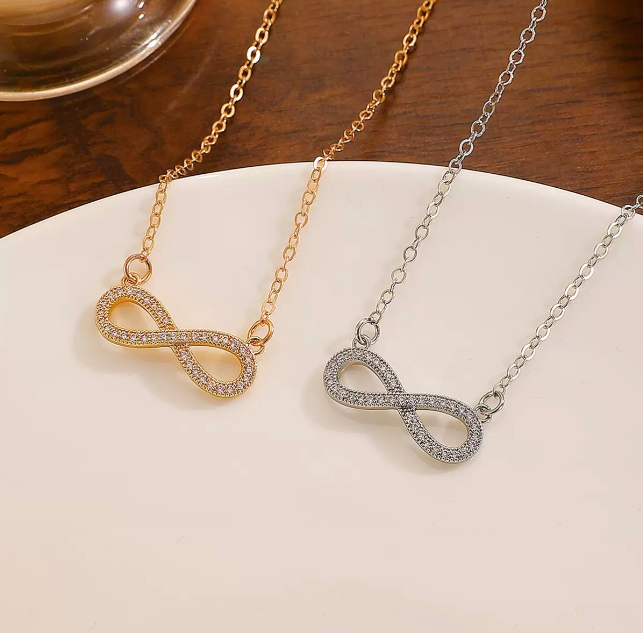 The Infinity Necklace is a timeless expression of endless love and connection. Gracefully crafted in precious metal and adorned with sparkling stones, it symbolizes a bond with no beginning or end — a promise meant to last forever.