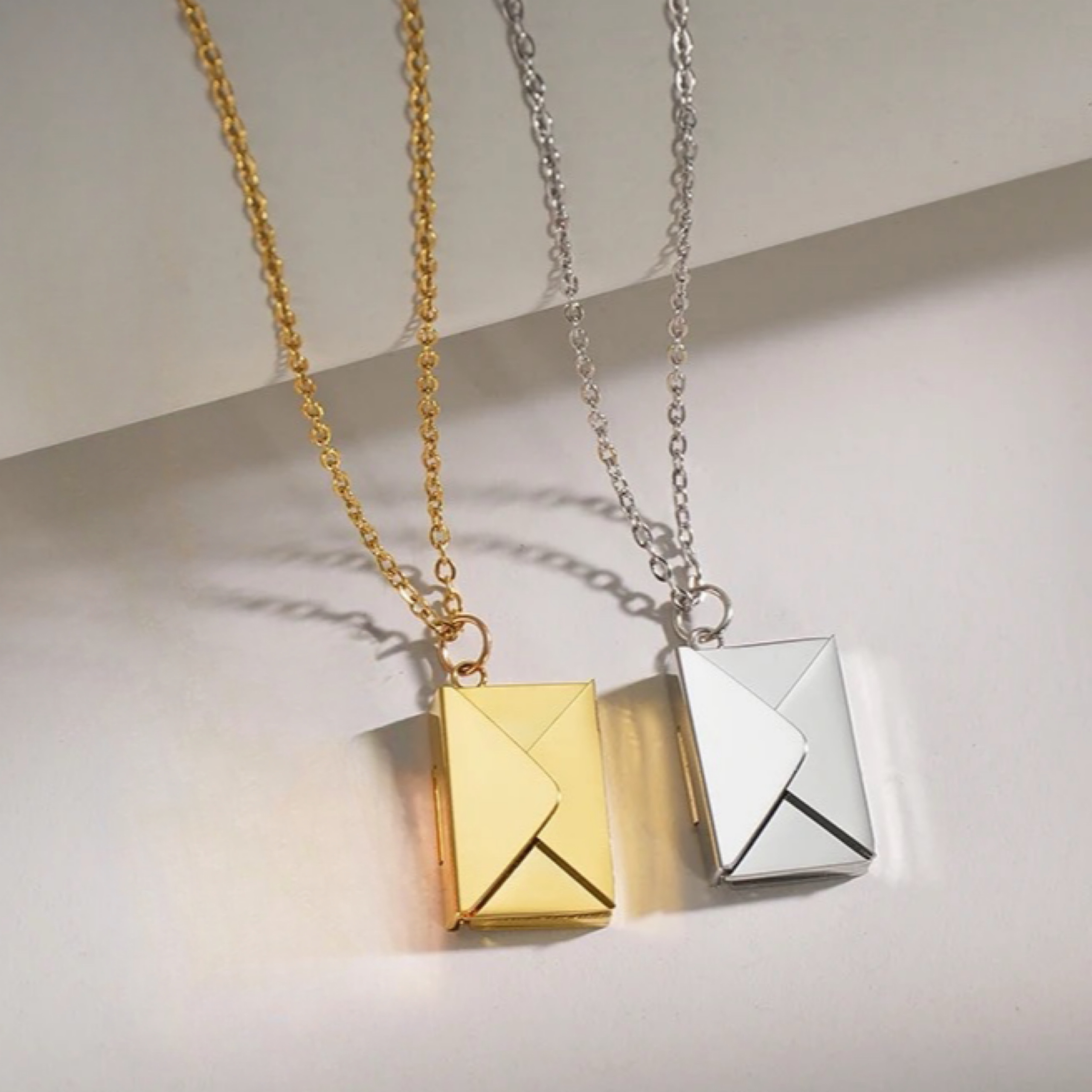 Available in PVD-plated gold and silver, this captivating necklace features a finely detailed envelope design that opens to reveal a hidden engraved message. Whether it’s a heartfelt note, a special name, or an important date, this pendant allows you to carry a cherished sentiment close to your heart. Crafted for durability and elegance, the Love Letter Necklace is a meaningful keepsake perfect for adding a personal touch to your jewelry collection.